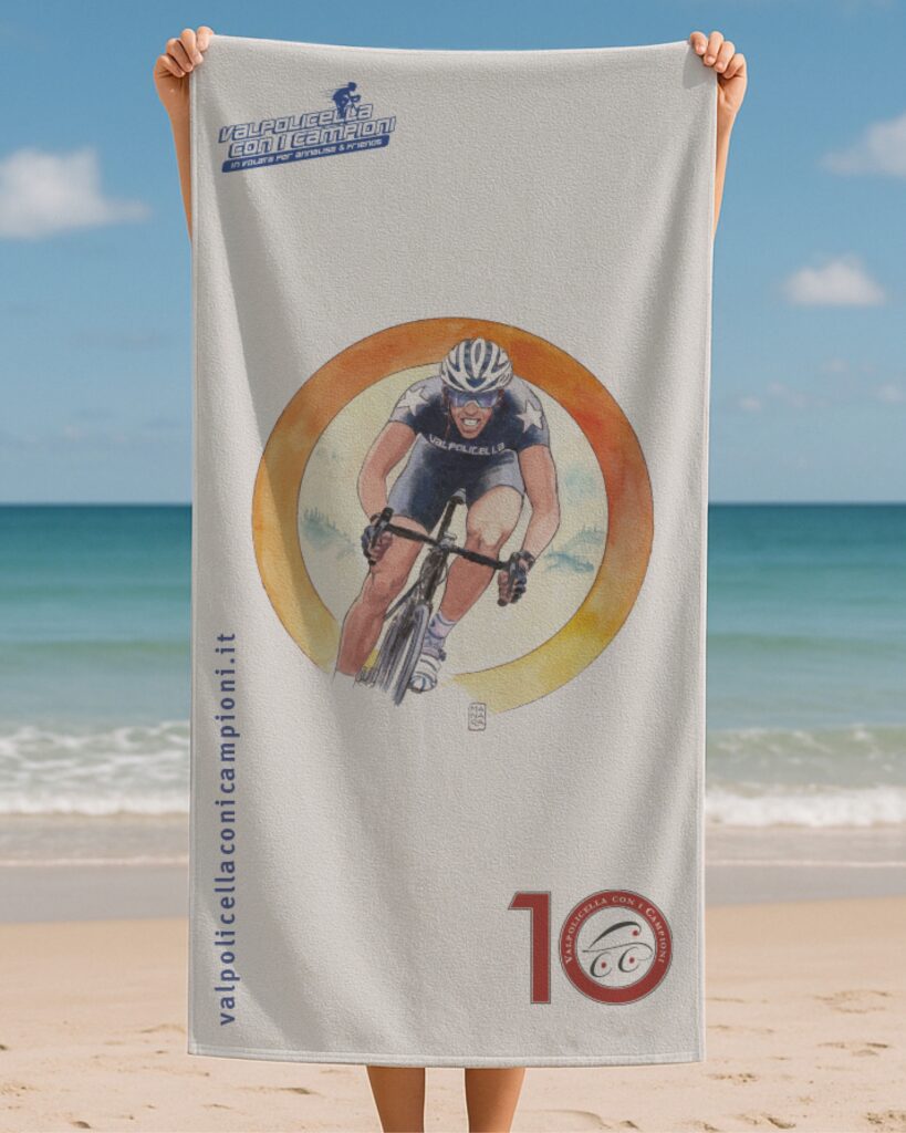 Pacco regalo speciale per la 10^ edizione con un telo mare di 70 cm x 150 cm* decorato con il nostro logo e il disegno di Milo Manara, e altri simpatici gadget.